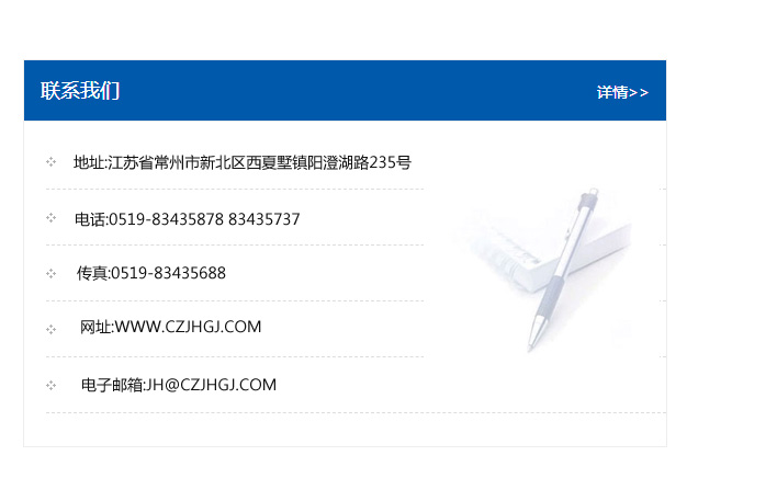 地址:常州市新北區(qū)友邦商務(wù)大廈1幢16、17層  電話:0519-85101652  傳真:0519-85112595  郵編:213022  網(wǎng)址:www.cz-jiayue_cn.hbfutian.com  郵箱:xiajifengaa@163.com